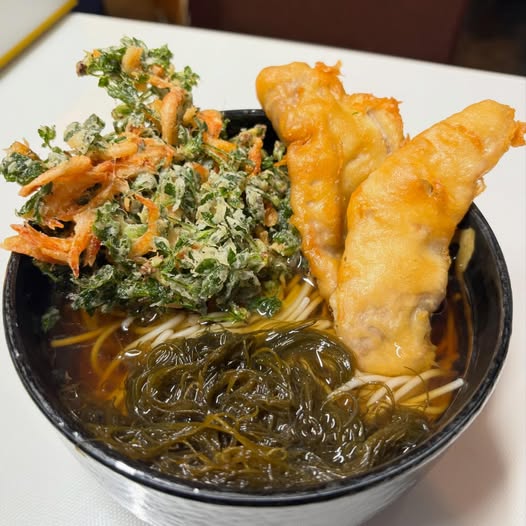 ウコギと桜エビのかき揚げ 豚天 輪島の岩もずく