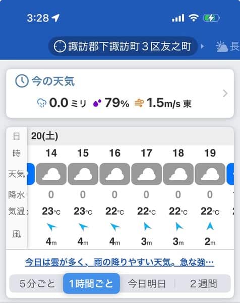 下諏訪は曇り 上諏訪は小雨 気温20℃