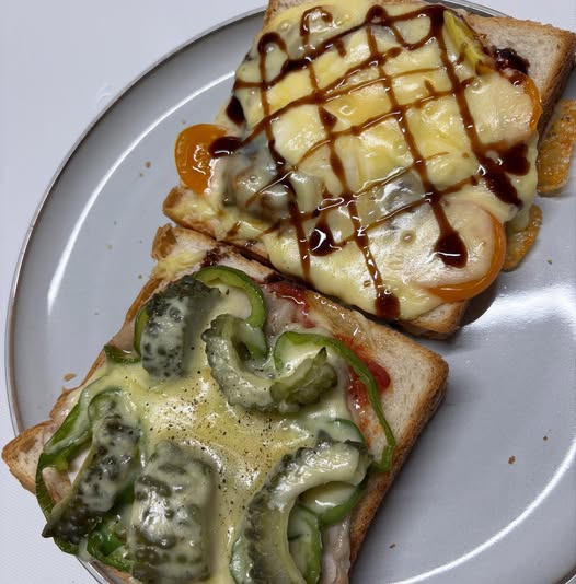 今日の賄い トースト チキンゴーヤピクルス サバ味噌缶マヨチーズ