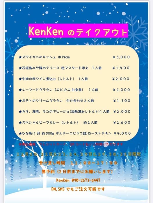 今年も12月限定のテイクアウト商品を販売しますホームパーティにご活用ください販売は12/20,21&2…